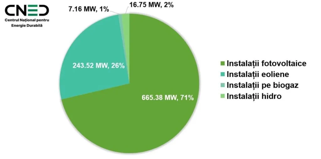 Структура установленной мощности подтверждает, что солнечная энергия становится основным вектором энергетического перехода в Республике Молдова. Из общего объёма 932,81 МВт на фотоэлектрические установки приходится 665,38 МВт, то есть почти 71%. Высокая доля отражает снижение технологических затрат, интерес инвесторов к проектам с более короткими сроками реализации и более предсказуемую регуляторную среду.